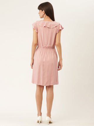 Elle Women Pink Band Collar Dress